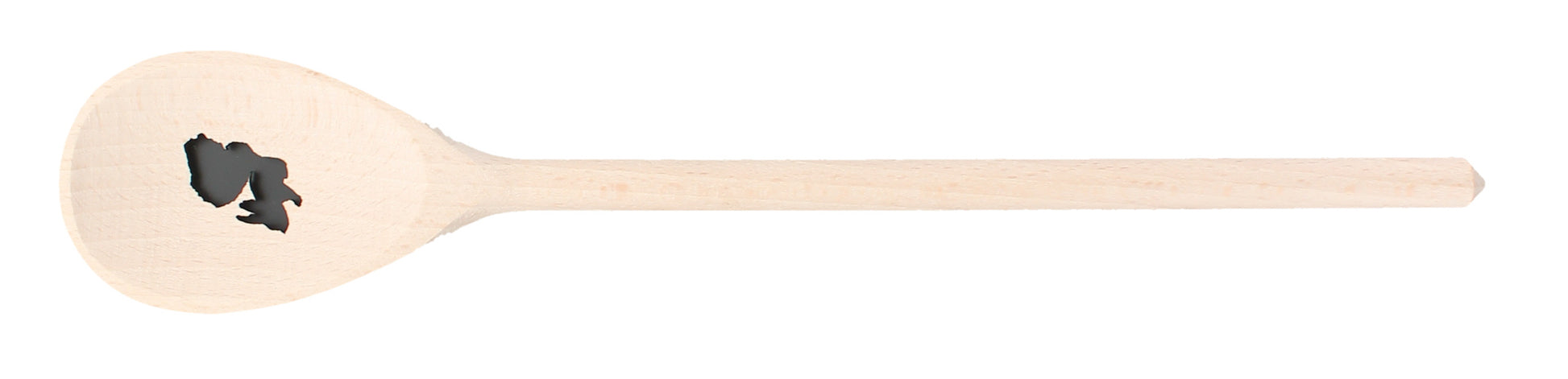 Der gelaserte Kochlöffel aus Buchenholz ist 30 cm lang und besonders stabil.