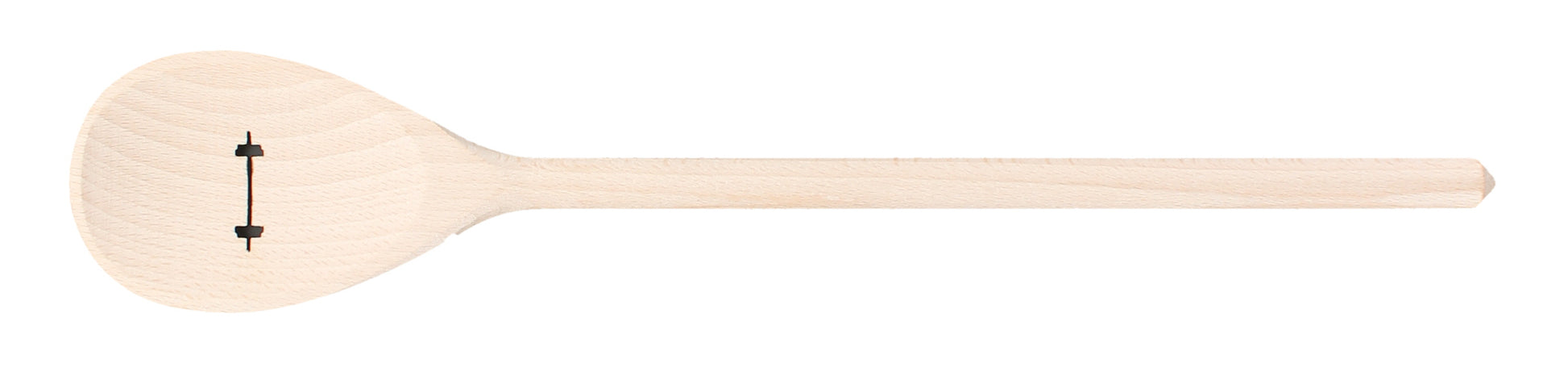 Der Kochlöffel ist aus Buchenholz gefertigt und 30 cm lang.