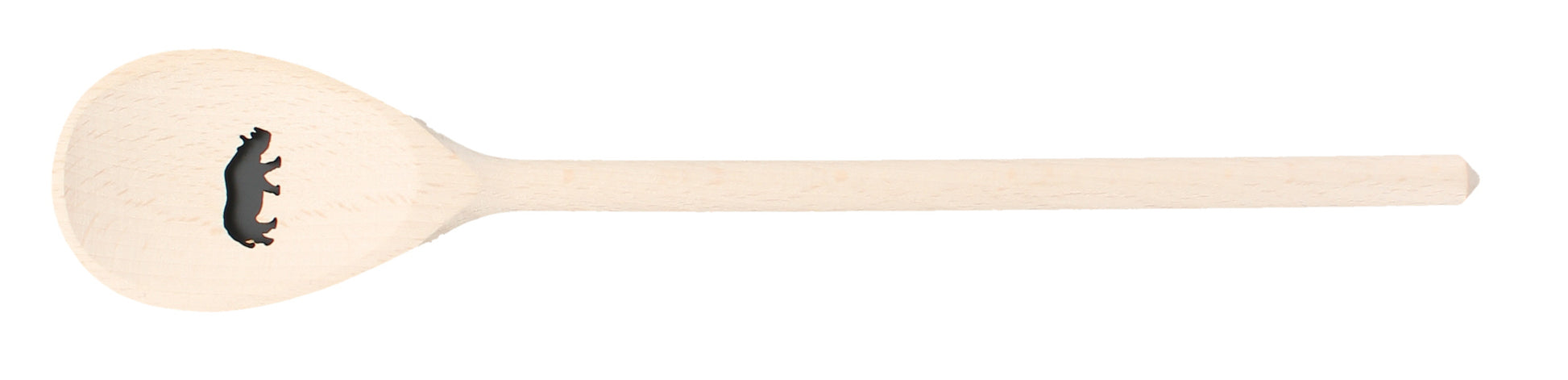 Der gelaserten Kochlöffel ist aus Buchenholz gefertigt und hat eine Länge von 30 cm.
