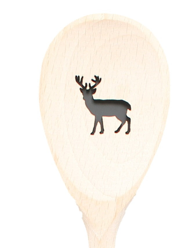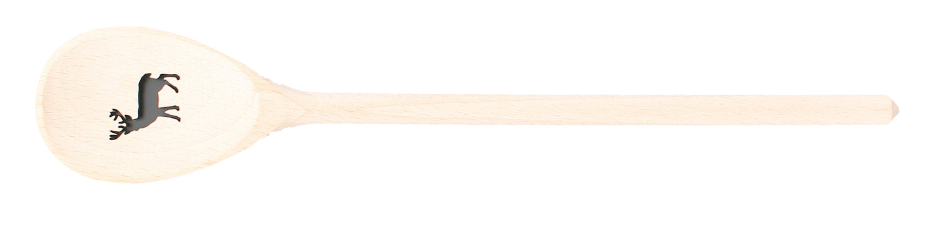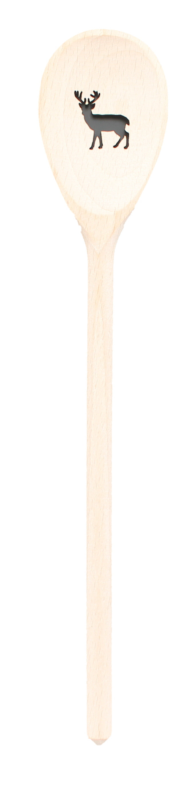 Der Löffel ist 30 cm lang und mit einer gelaserten Hirsch-Figur verziert.